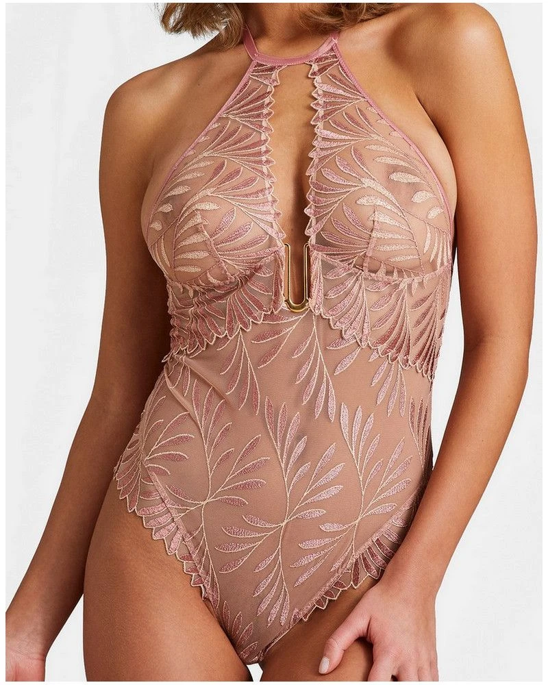 Le body de la collection Sensory Illusion de la marque Aubade propose un graphisme écaillé propre à cette collection unique. Vous trouverez également un bijou en zamak doré, avec une forme ras du cou élégante.