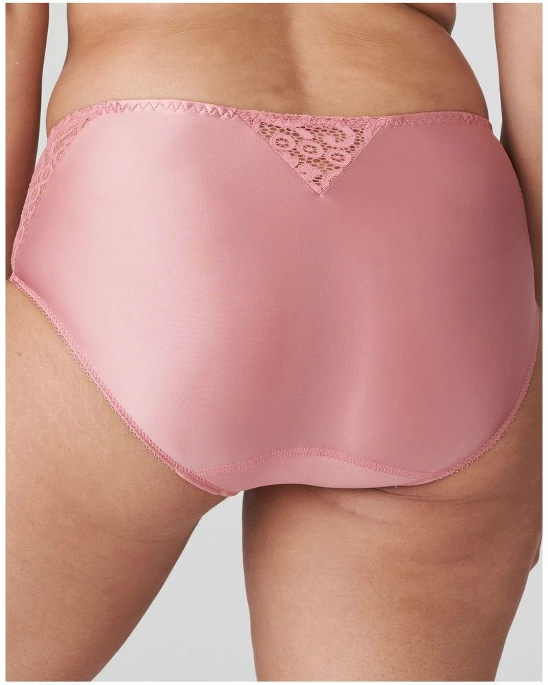 Une culotte taille haute vintage, réalisée dans un tissu satiné brillant, ornée de dentelle nineties sur les côtés et l’arrière.