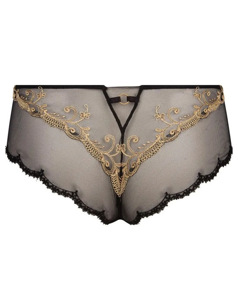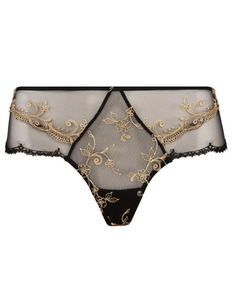 Le shorty Déesse en Glam de la marque Lise Charmel propose un confort optimal grâce à sa dentelle élastique légère et fine. L’incrustation de tulle vient apporter une touche de sensualité avec un jeu de transparence.
