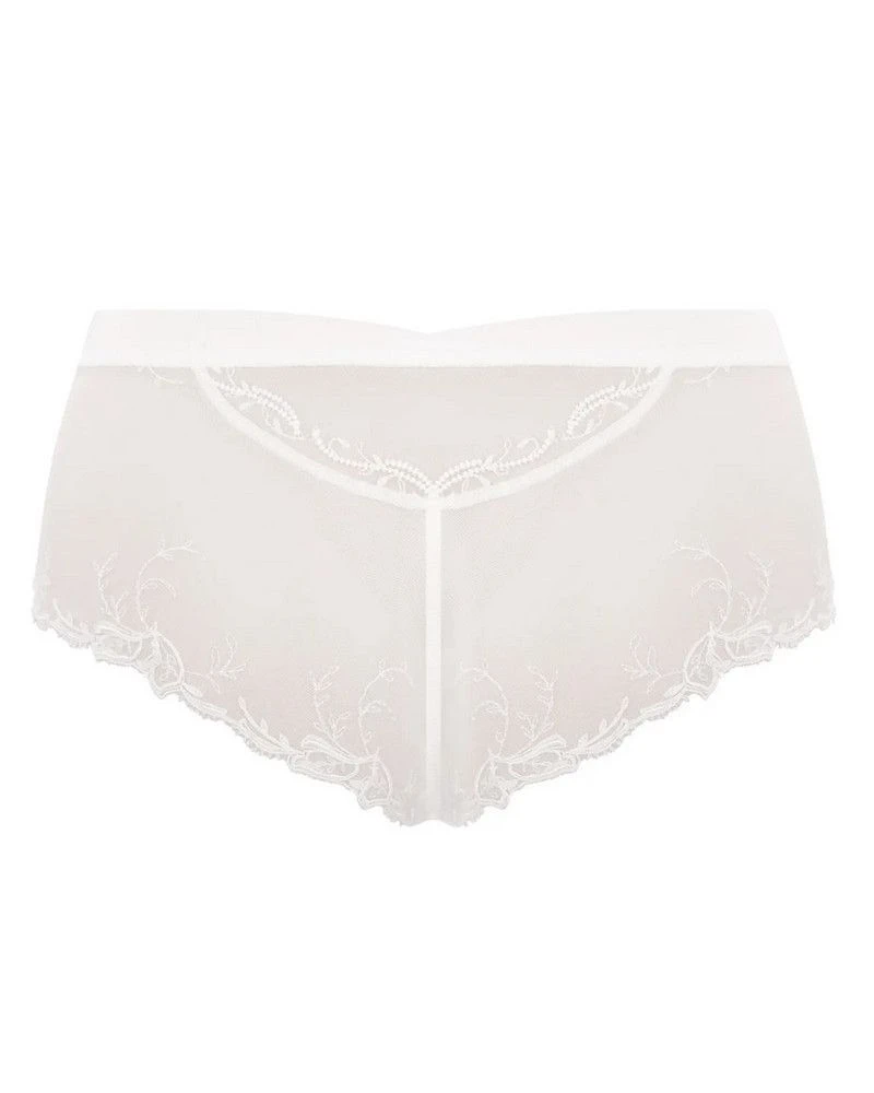 Le shorty Source Beauté de Lise Charmel propose un confort optimal grâce à ses matériaux de qualité. Ce dernier est sublimé par une broderie et un tulle transparent qui viennent mettre en valeur le corps et la peau.