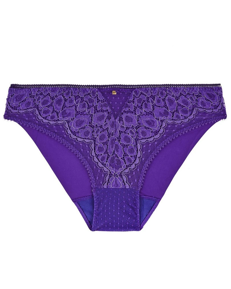 Le slip brésilien de la collection Illusion Fauve assure un look moderne et raffiné avec sa dentelle façon écailles, il est sublimé à l’avant par un bijou.