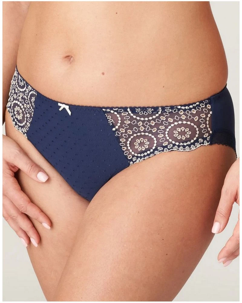 Le slip Prima Donna de la collection Osino propose un tissu lisse, orné de broderie anglaise sur les côtés. Les finitions sont très fines, pour ne laisser aucune démarcation sous les vêtements.