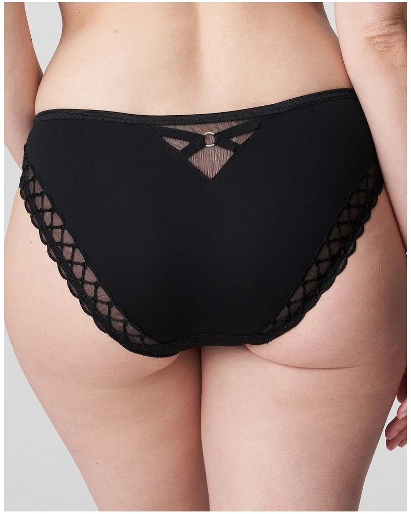 Le slip Prima Donna de la collection Vya offre sensualité et confort grâce à sa semi-transparente, et ses broderies sur les fesses. Une petite boucle décorative au dos complète ce look élégant.