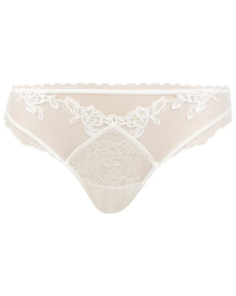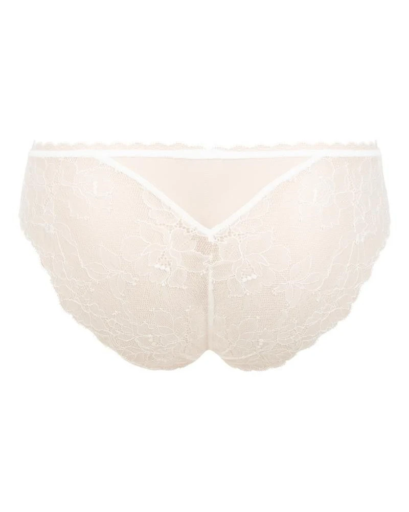 La collection Imagine la Beauté de la marque Lise Charmel est ligne qui met en lumière une féminité romantique et moderne. C’est par des coupes épurées que la délicatesse des graphiques de la dentelle sont mis en lumière tout comme la broderie de fleurs d’Azalées fine et légère. Un style lumineux et féminin séduisant par ses détails comme le strass à l’entre gorge ou les nuances présentes dans son coloris intemporel écru nacre.