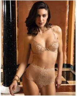 Le soutien-gorge coque Antigel de la collection Liberté en Fleurs offre une bordure élastique en polyamide élasthanne fantaisie à ponts. Le modèle est féminisé par un fin galon de dentelle Jacquard au dessin végétal. Les bretelles sont enrichies d’une bande en dentelle, habillant le décolleté. Pour plus de confort, le dos des bretelles est élastique. Pour embellir l’entre-gorge, un nœud orange souligné d’un liseré satin décore le soutien-gorge.