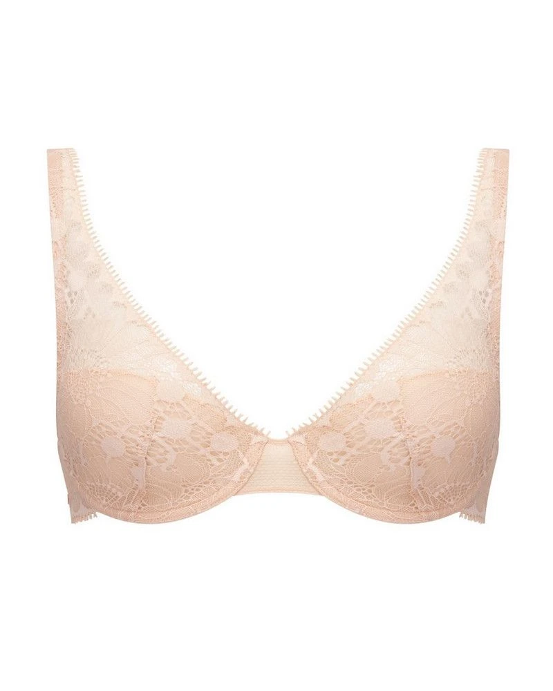 Ce soutien-gorge coque plongeant propose une dentelle souple et raffinée pour un look à la fois quotidien et élégant. Bonnet B à F.