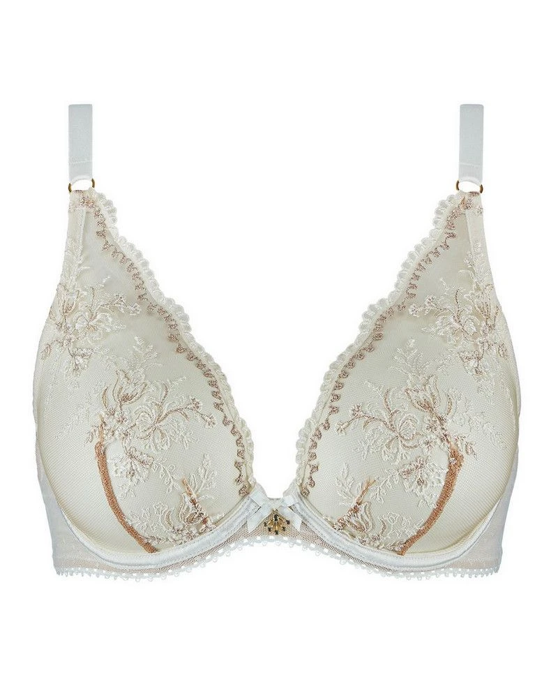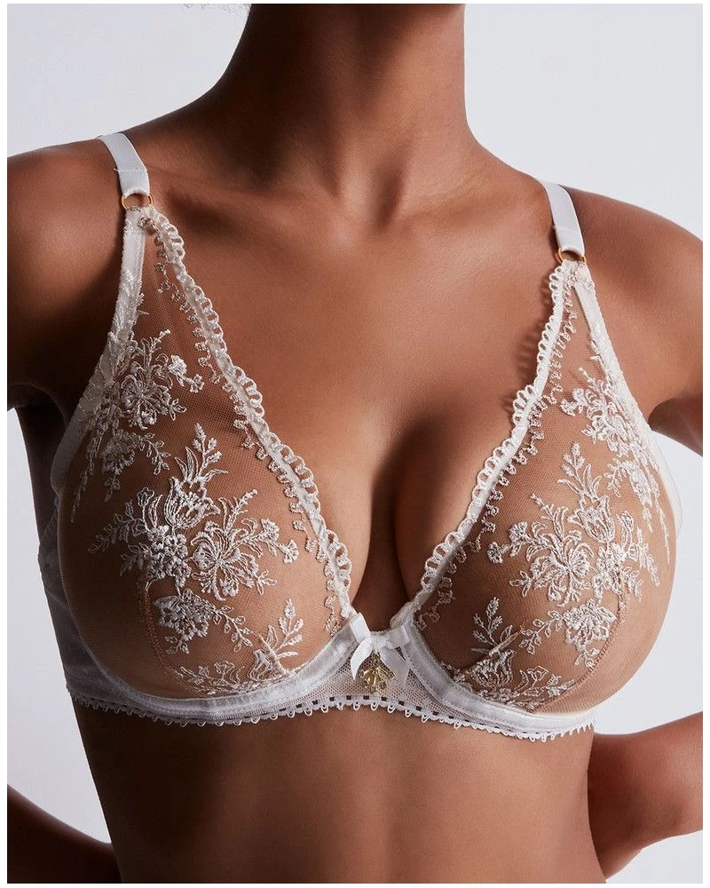 Le soutien-gorge triangle plunge combine la douceur de sa broderie et son écaille graphique à la sensualité de son décolleté plongeant pour un look élégant et raffiné.