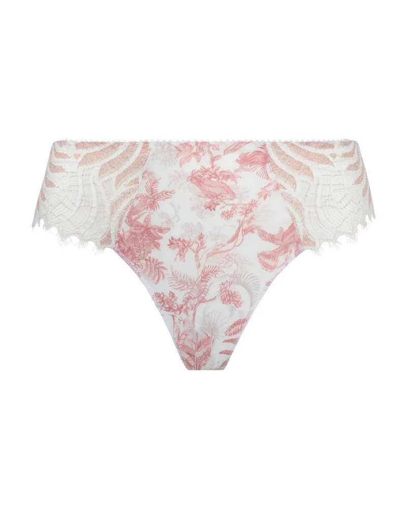 Ce string de la collection Jungle de Jouy découvre les fesses avec subtilité. La dentelle sur les côtés apporte un jeu de transparence sexy.