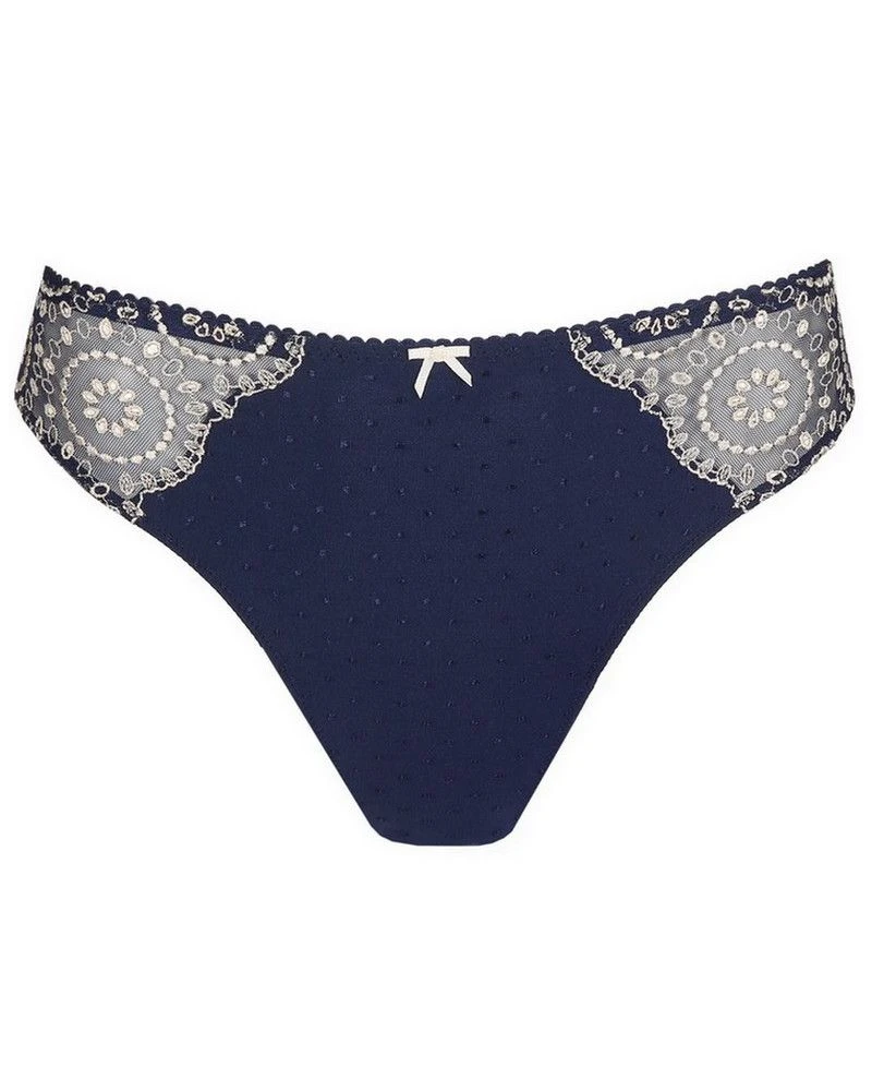 Le string Prima Donna de la collection Osina offre une allure Ă©lĂ©gante et sensuelle, avec un tissu ornĂ© dâune fine broderie anglaise.